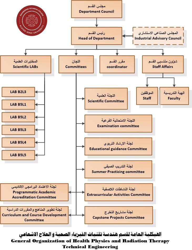 الهيكل التنظيمي لقسم هندسة تقنيات الفيزياء الصحية والعلاج الاشعاعي